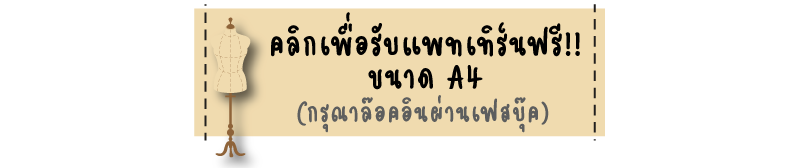 หลังจากเตรียมอาวุธครบมือแล้วให้คลิกเข้าไปเพื่อรับแพทเทิร์นฟรี!!! ได้ที่ปุ่มด้านล่างนี้นะคะ เป็นไฟล์ PDF ที่ต้องดาวน์โหลดผ่านคอมพิวเตอร์เท่านั้น แล้วนำไปปริ้นท์เป็นกระดาษขนาด A4 / A3 สะดวกปริ้นท์แบบไหนก็ดาวน์โหลดแบบนั้นไปนะคะ จากนั้นก็นำแพทเทิร์นมาต่อกันค่ะ