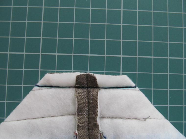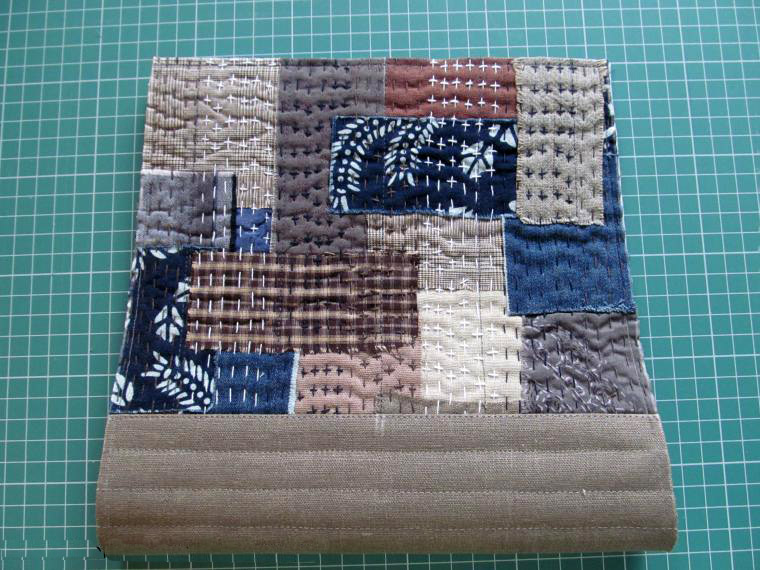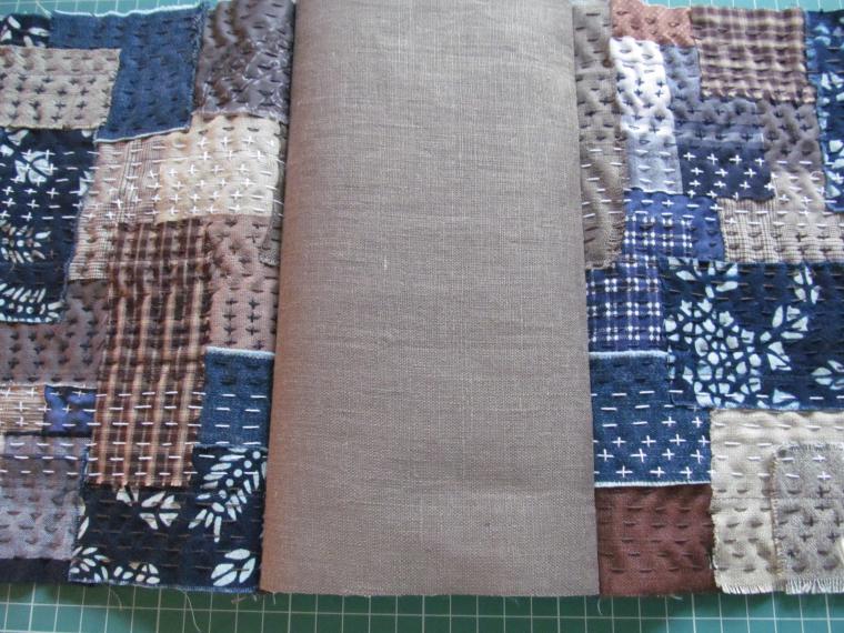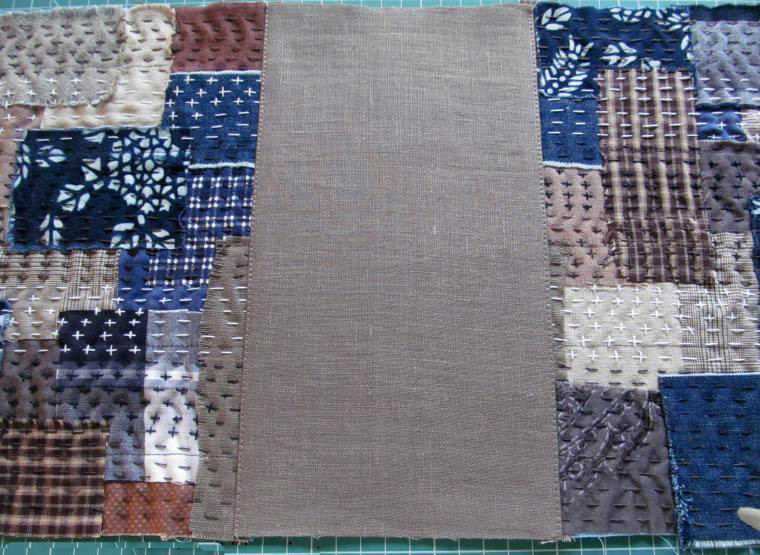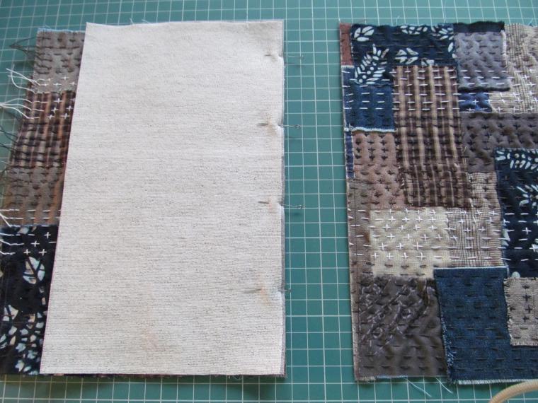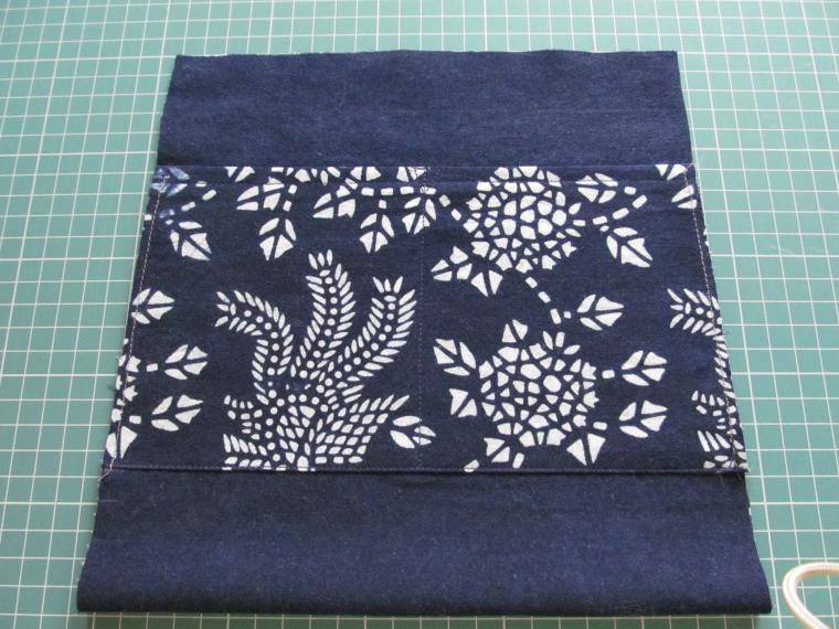 5. นำก้นกระเป๋ามาเย็บติดกับชิ้น Sashiko ทั้ง 2 ชิ้น จากนั้นเย็บกดตามรูป